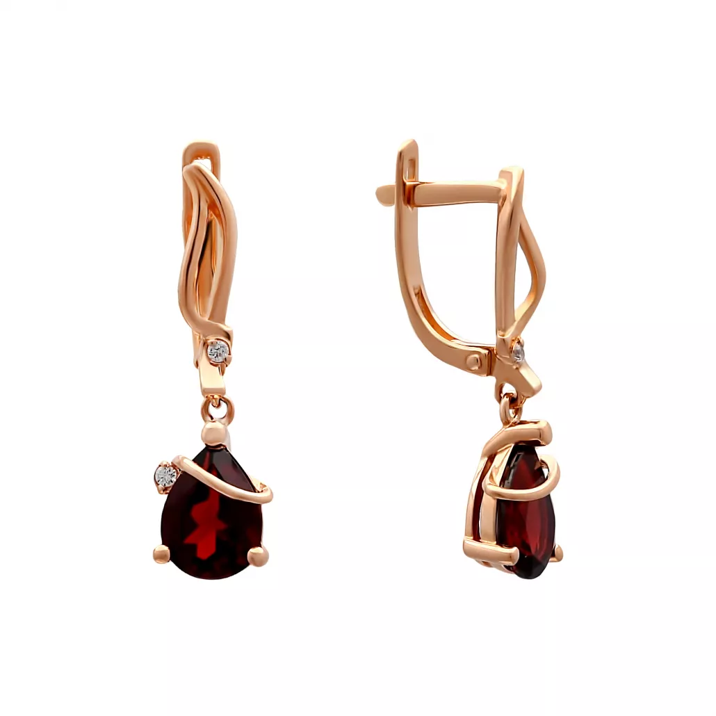- Серьги с фианитом и гранатом из золота