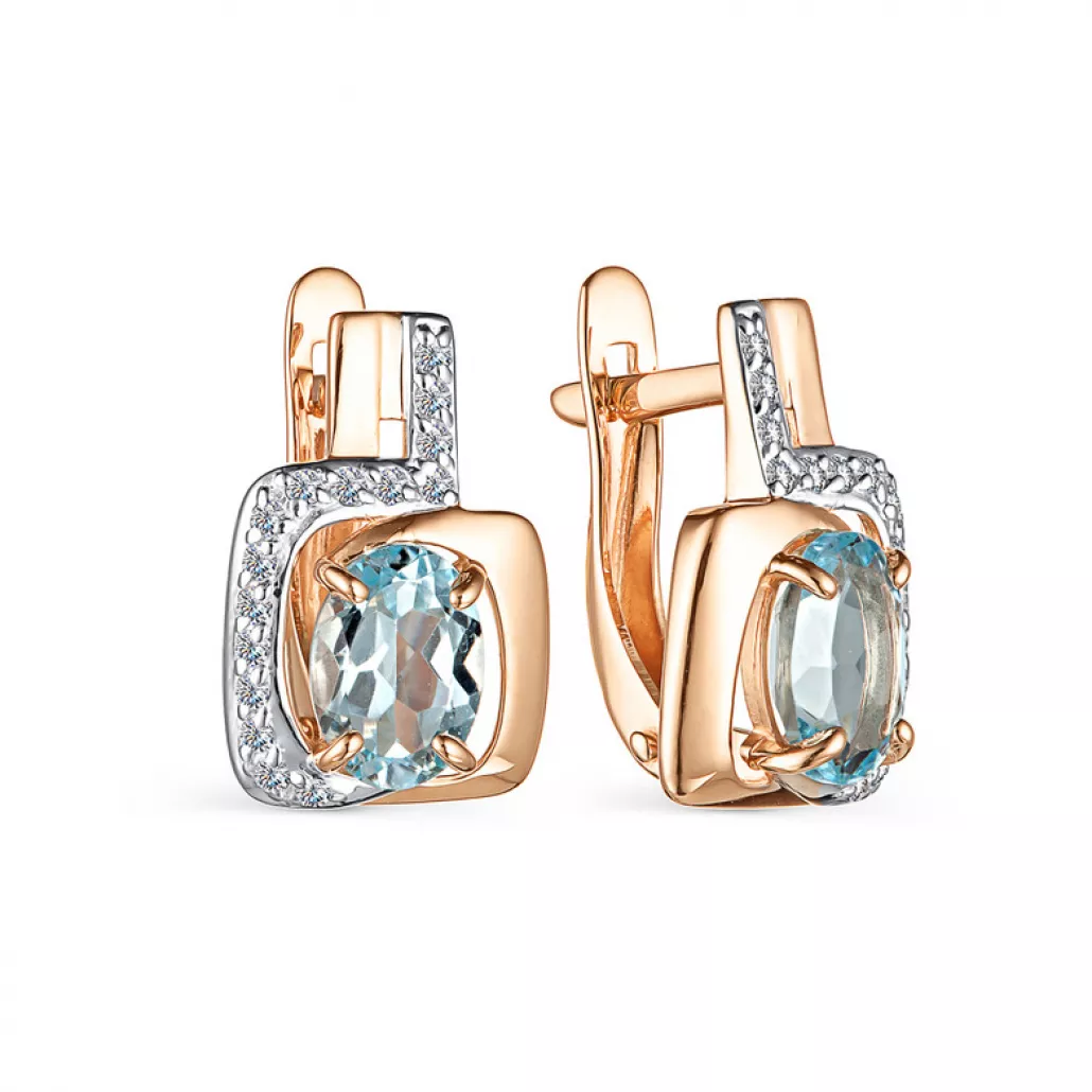 Серьги с топазом и фианитом из золота Артикул: 2100404