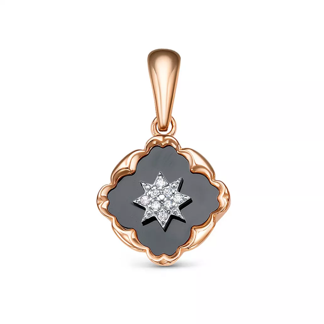 - Подвеска с ониксом и фианитом из золота