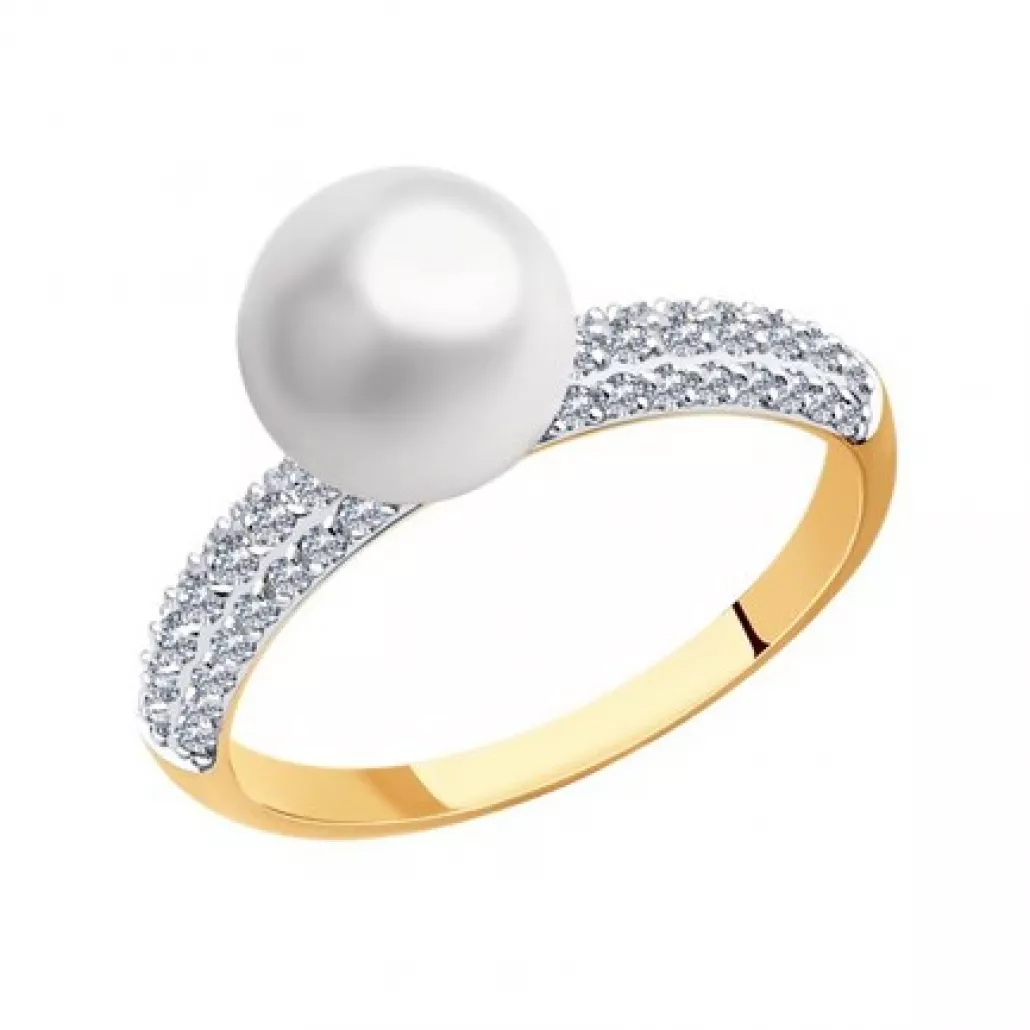 Кольцо с жемчугом и фианитом из золота